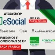 Na intenção de atender a esclarecimentos frente às mudanças ocorridas recentemente na legislação relacionada ao trabalhador no Brasil, a ACIRCAN através do Núcleo de Contabilistas promove a palestra E-Social, dia 24/05, as 19h, no Auditório – Rua Cel. Pedro Carlos, 974.