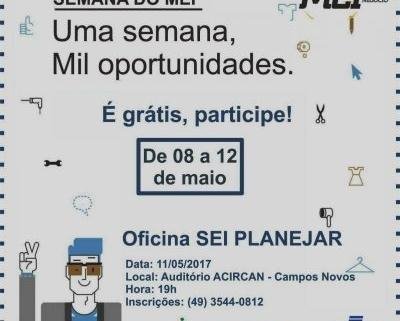 O coordenador de Núcleos da ACIRCAN e Consultor do SEBRAE, Vandenir de Amorin informou que no dia 11 de maio, durante todo o dia os empreendedores individuais poderão se dirigir até a Associação Empresarial para esclarecer dúvidas sobre seu empreendimento, pedir informações sobre abertura de novos negócios, sobre instituições financeiras que oferecem créditos em condições especiais e a noite todos estão convidados para participar da oficina “Sei Planejar”.