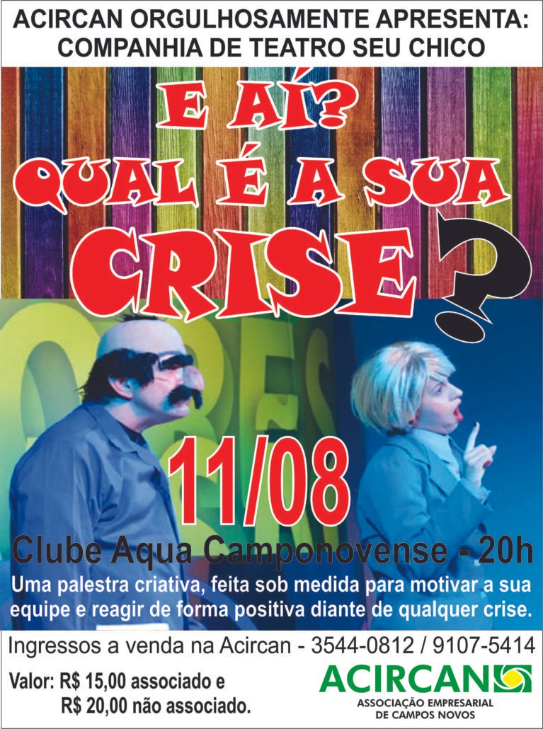 A Acircan traz para Campos Novos, a peça teatral: E AÍ, QUAL É SUA CRISE?