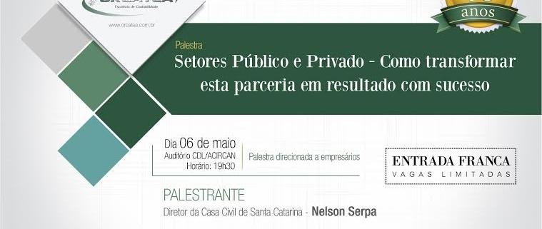 O escritório Contábil Orcatéa convida todos os associados e empresários em geral para palestra com o Diretor da Casa Civil de Santa Catarina, sr. Nelson Serpa.
