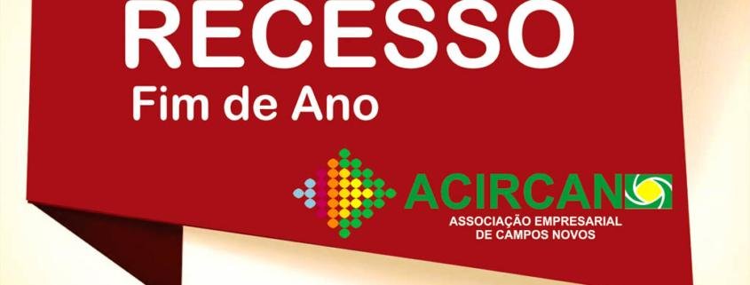 A Associação Empresarial de Campos Novos – ACIRCAN, expediu comunicado informando que o expediente normal de atendimento será até o dia 21 de dezembro (quarta-feira).