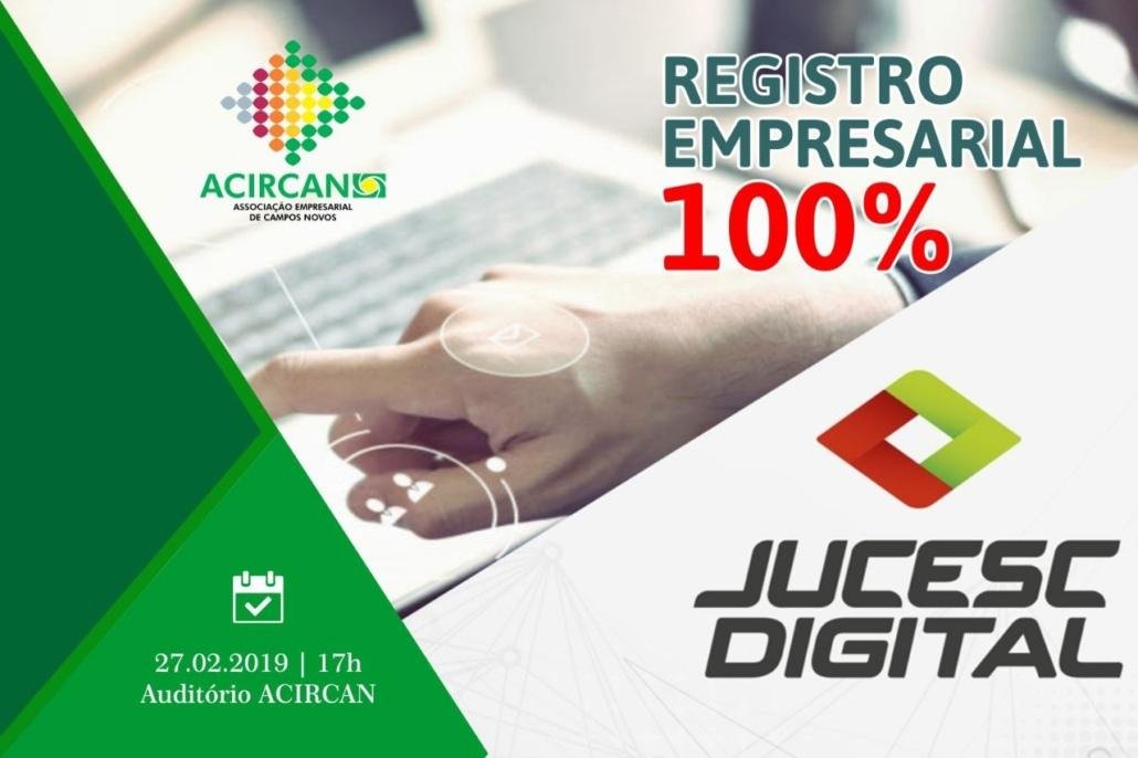 Será promovido pela ACIRCAN hoje dia 27/02/2019, às 17h,o Workshop Registro Empresarial 100% Digital, no Auditório da Acircan.
